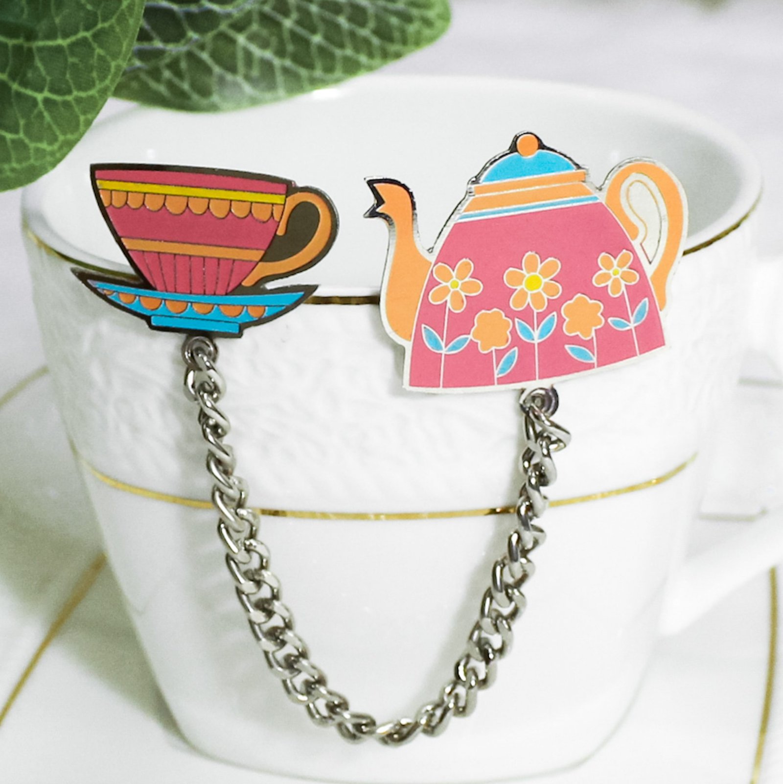For the love for tea, add this Cup and Kettle Lapel Pin in your quirky set of accessories.